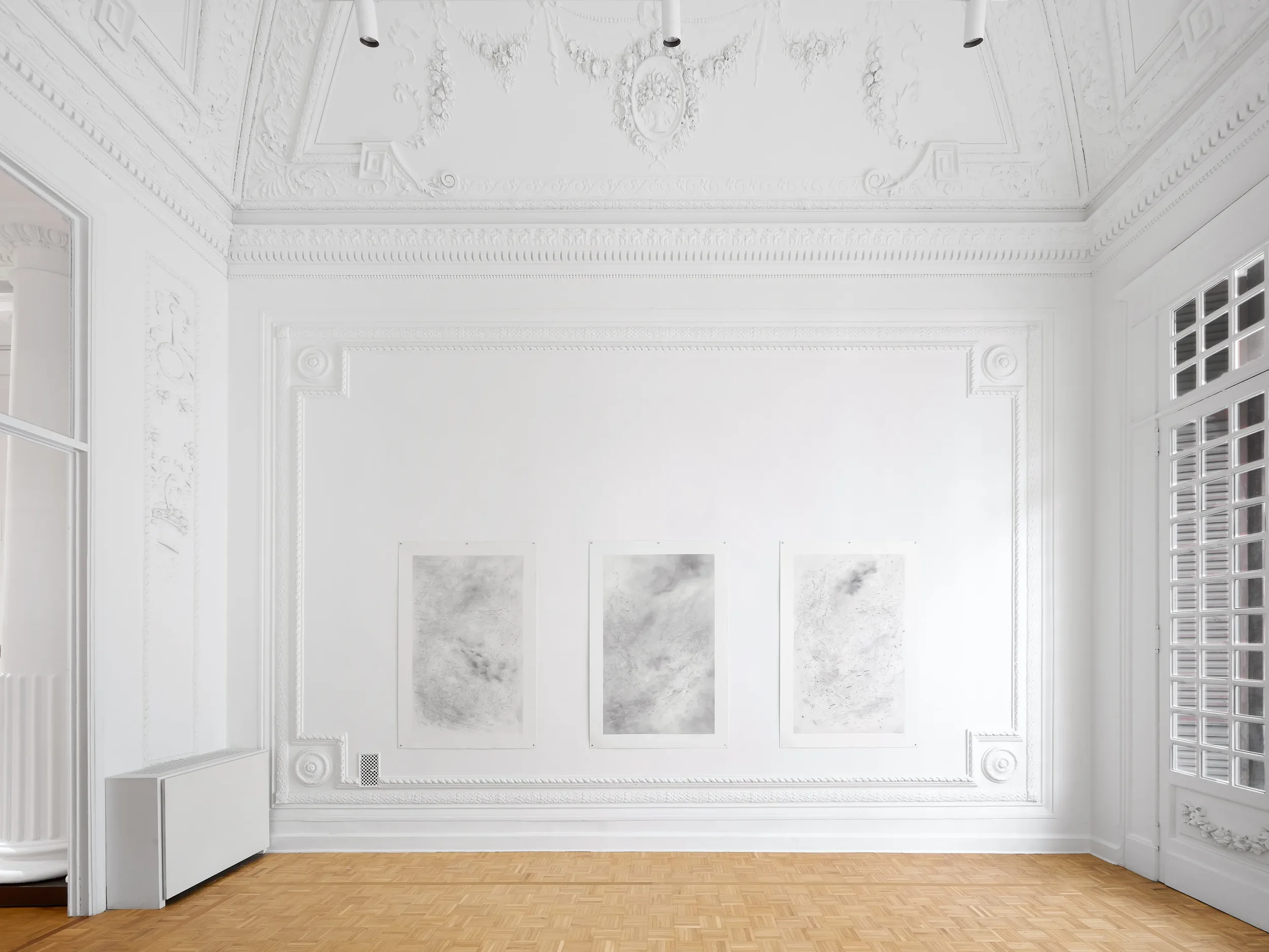 In the series Light Sleeper (2019–2025), Teju Cole draws out the information latent in the erased blackboards of the classrooms in which he teaches at Harvard. The resulting large-scale photographs, in which scratches, stains and fugitive chalkmarks hint at the grids and starfields of celestial maps, raise questions about who speaks and who is silenced in an increasingly turbulent world; a turbulence charted by each contemporary artist in Atlante, just as it was by Claudio Parmiggiani and Luigi Ghirri in their works from the early 1970s after which this exhibition is named.